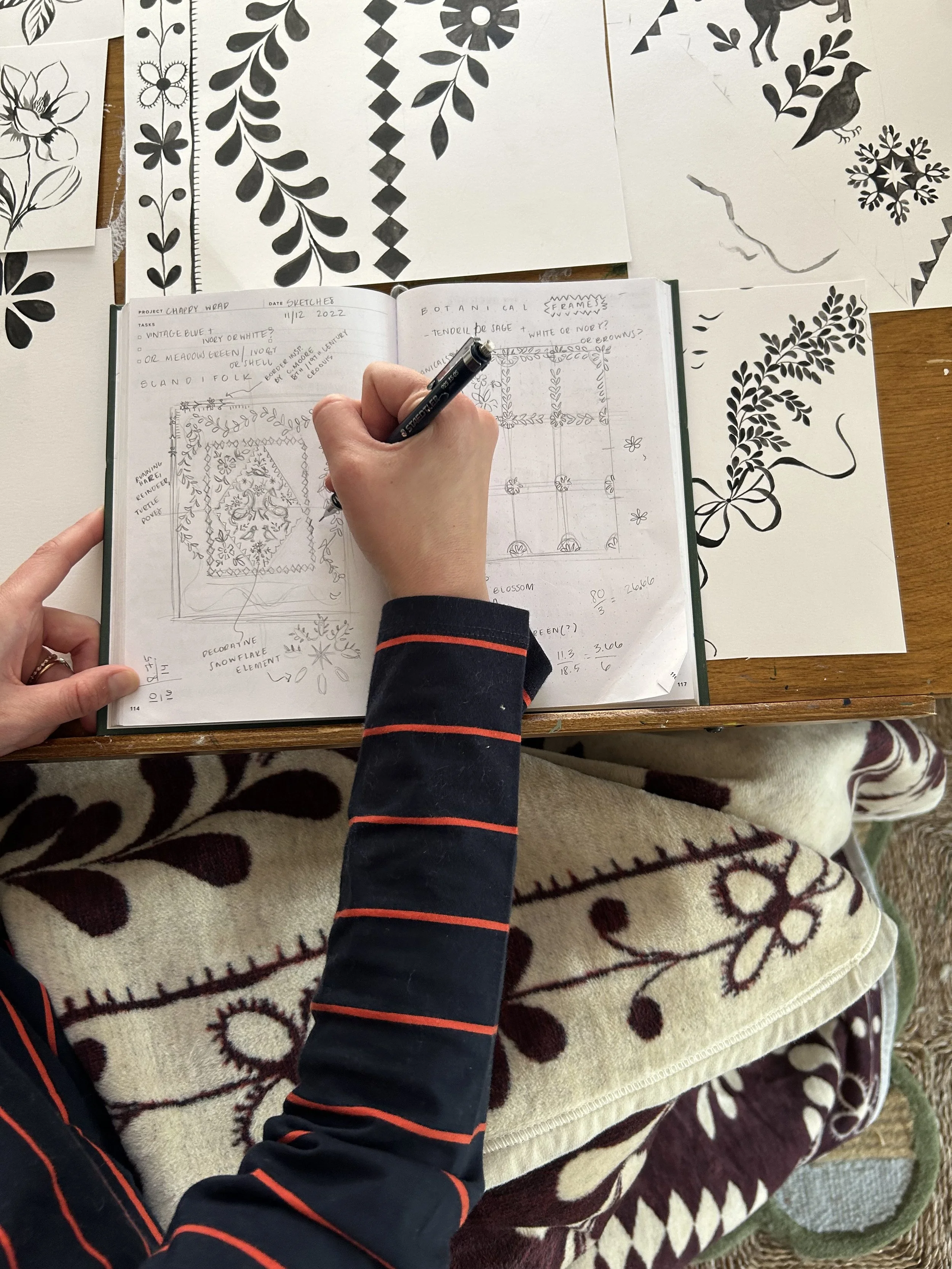 When I started working on these designs last year with the ChappyWrap team, my goal was to create patterns that look and feel like art for your home. We pulled references from some of my favorite sources of inspiration- folk art, block printed textiles, antique bone inlay, and botanical motifs- and added a festive spin, resulting in four blankets that are just waiting to become holiday heirlooms.