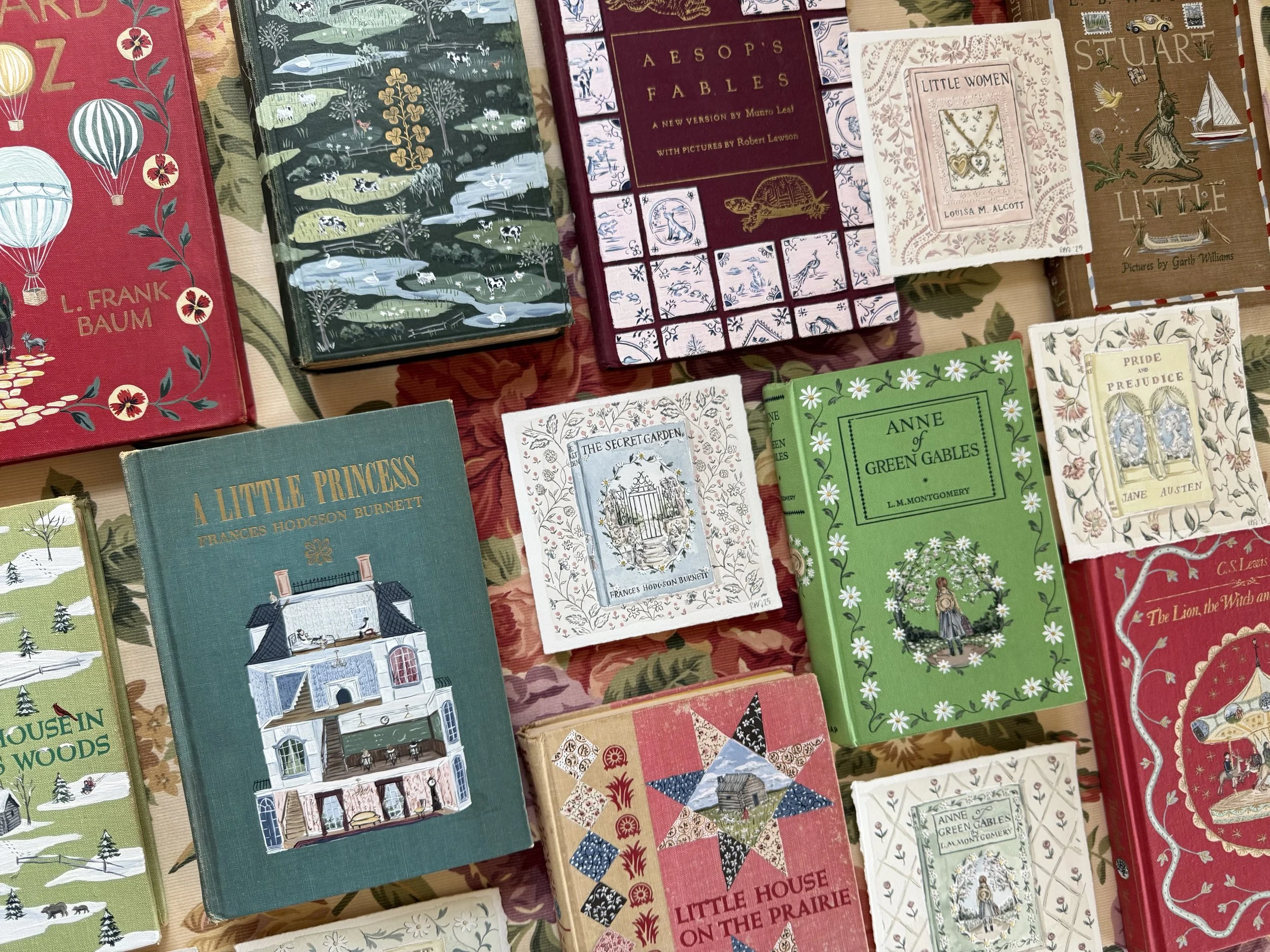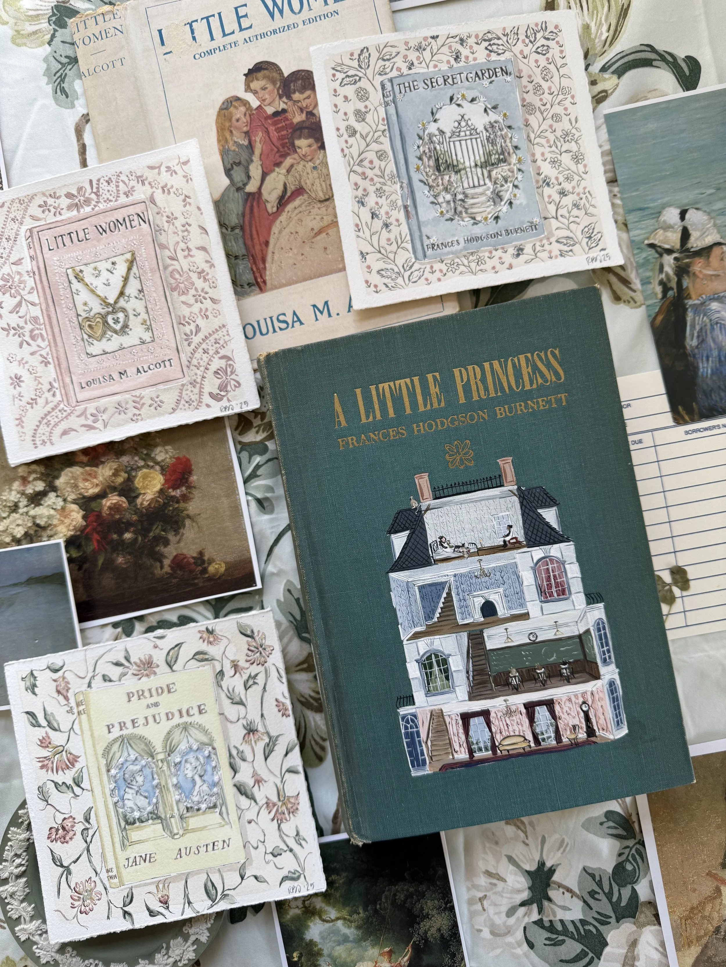 While I held onto that particular copy of Little Women, I did continue to paint more books in hopes of sending them out into the world. I was thrilled when the first eight sold with our holiday collection, and decided I wasn’t ready to stop there- which brings me to my point! I am so very happy to introduce my first original artwork collection of 2025- the Classics Collection.